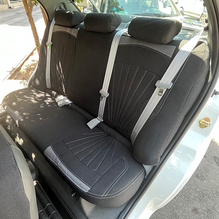 روکش صندلی ماشین ال 90 پارچه کتان طرح پرو رنگ طوسی مشکی