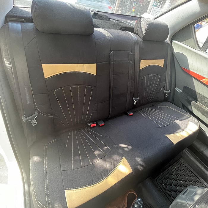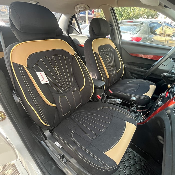 روکش صندلی ماشین دنا پارچه کتان طرح پرو رنگ مشکی کرم