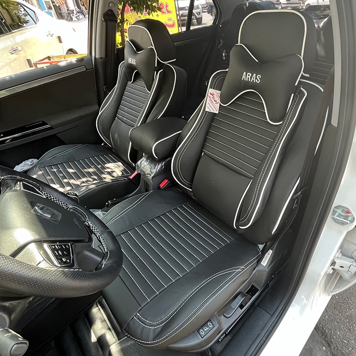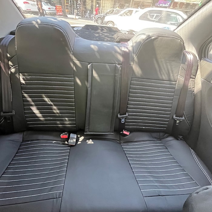 روکش صندلی ماشین سمند سورن چرم طرح پلاس رنگ مشکی دوخت سفید