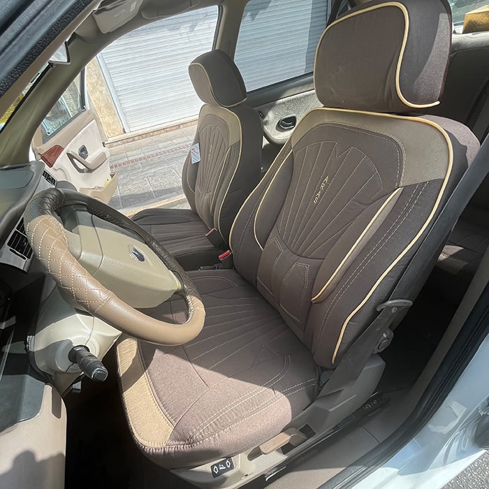 روکش صندلی ماشین سمند قدیم پارچه کتان طرح پرو رنگ سدری کرم