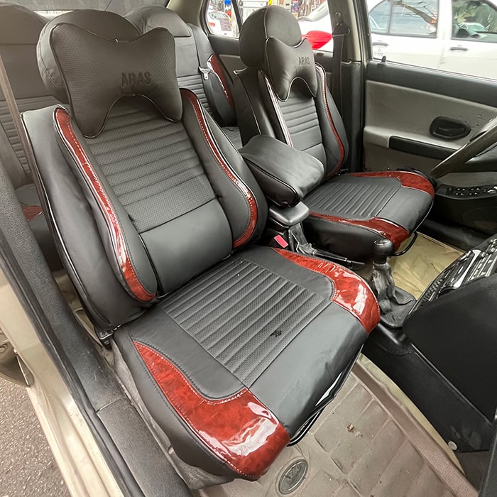 روکش صندلی ماشین برلیانس 330 چرم رنگ مشکی زرشکی