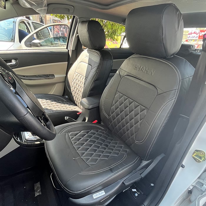 روکش صندلی ماشین سورن چرم طرح پلاس رنگ مشکی کرم