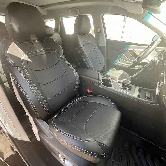روکش صندلی ماشین فیدلیتی 7 نفره چرم pu مشکی دوخت سفید