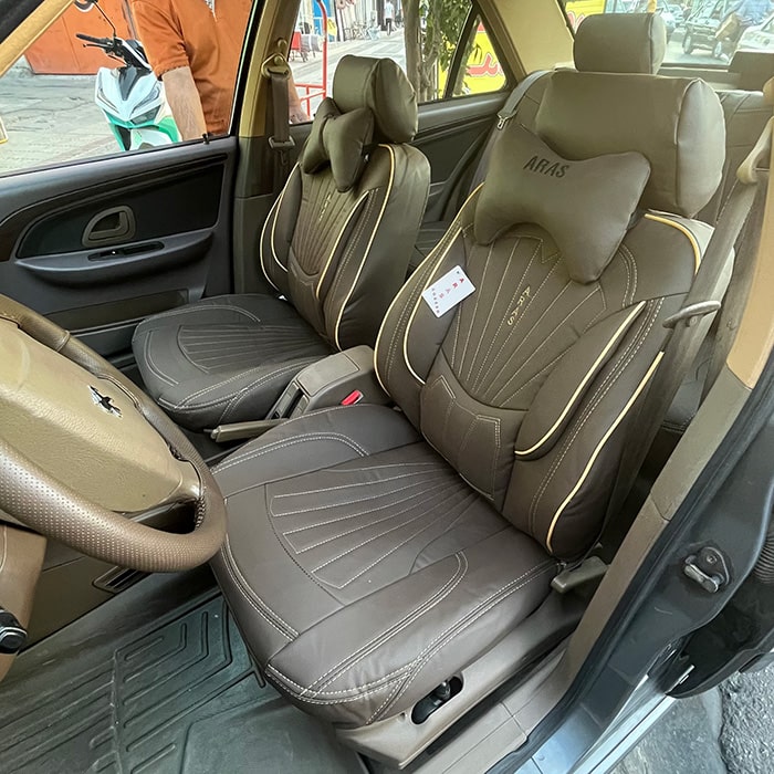 روکش صندلی ماشین پرشیا قدیم چرم طرح پرو رنگ سدری دوخت کرم 32,000,000ریال