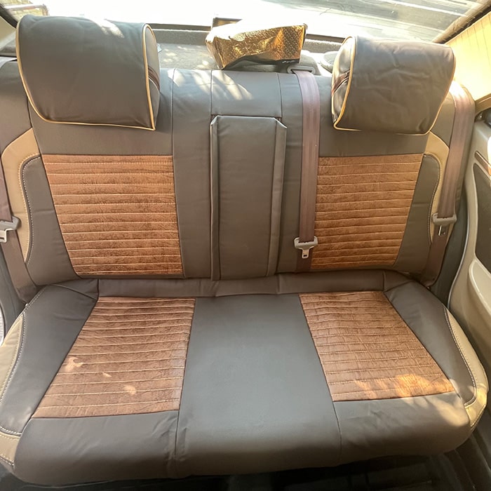 روکش صندلی ماشین پرشیا جدید چرم طرح پلاس رنگ سدری کرم وسط پارچه پوستی