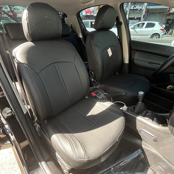 روکش صندلی ماشین پژو 207 چرم طرح اپتیما رنگ مشکی