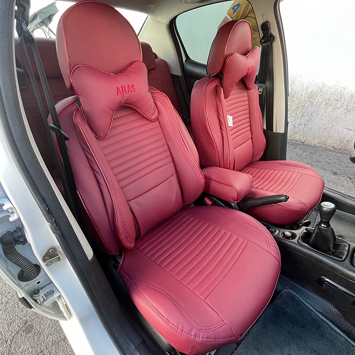 روکش صندلی ماشین پژو 206 چرم طرح پلاس رنگ زرشکی
