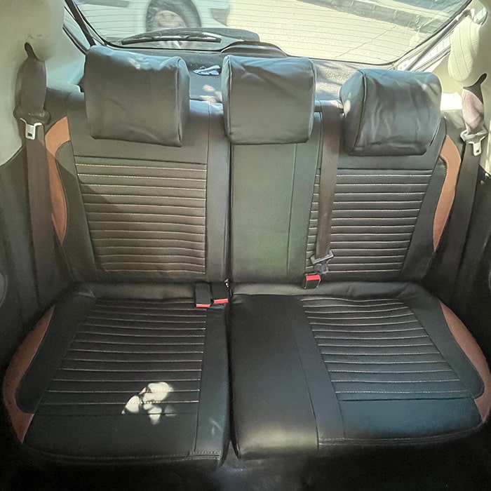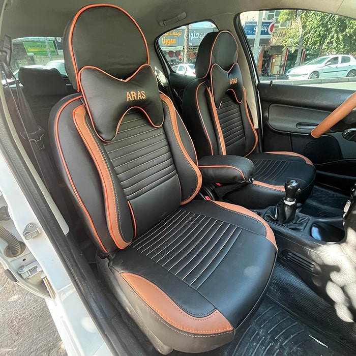 روکش صندلی ماشین پژو 207 چرم طرح پلاس رنگ مشکی مارون