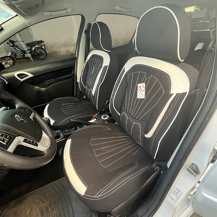 روکش صندلی ماشین پژو 207 پارچه کتان طرح پرو رنگ مشکی سفید