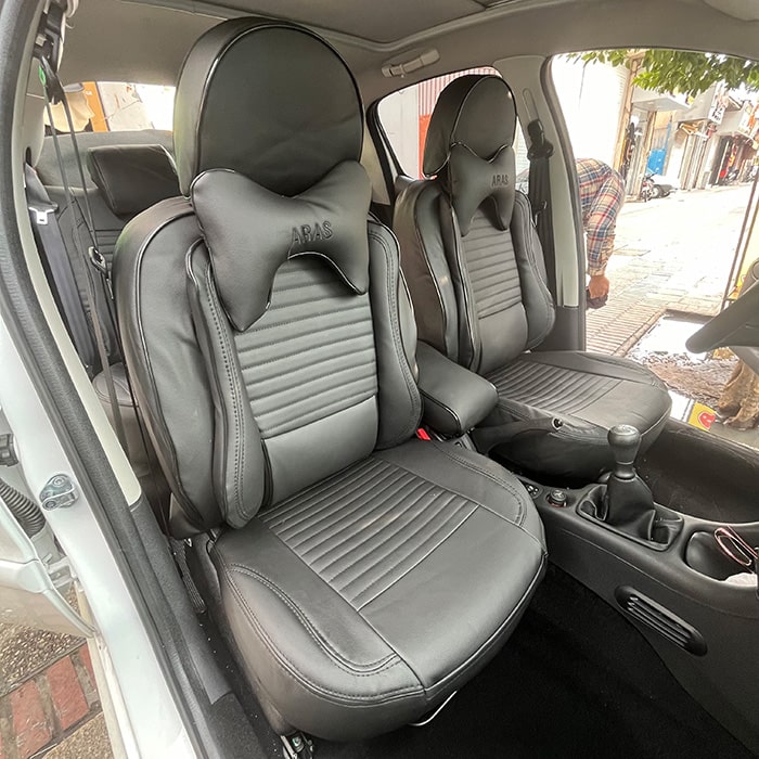 روکش صندلی ماشین پژو 207 چرم طرح پلاس رنگ مشکی