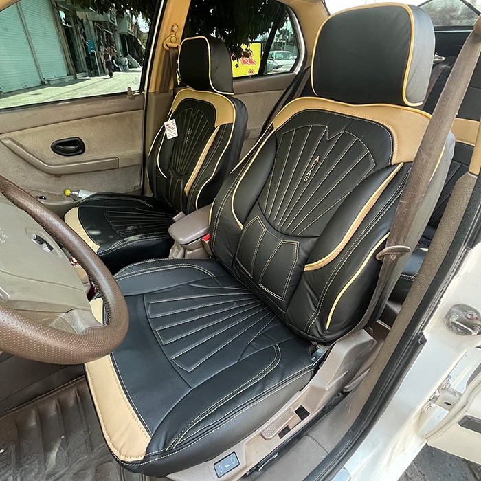 روکش صندلی ماشین چرم سمند سورن طرح پرو رنگ مشکی کرم