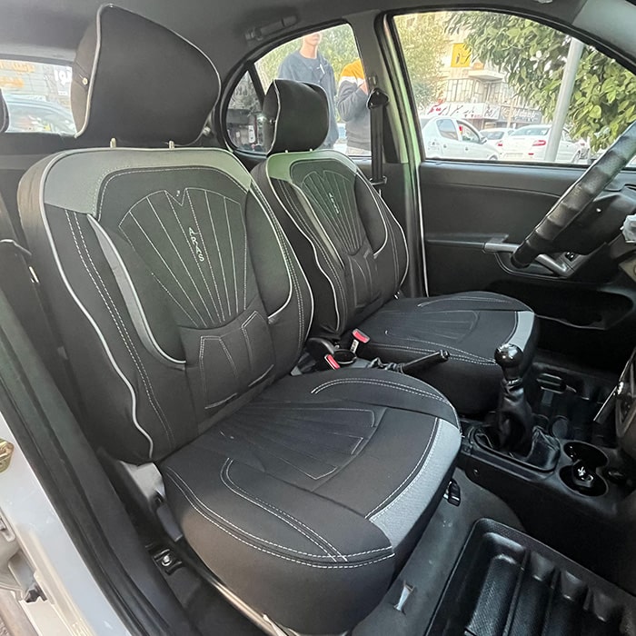 روکش صندلی ماشین کوییک پارچه برزنت طرح پرو رنگ مشکی طوسی
