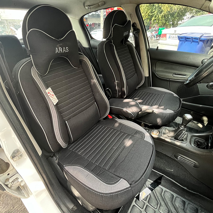 روکش صندلی ماشین 206 پارچه کتان طرح پلاس رنگ مشکی طوسی