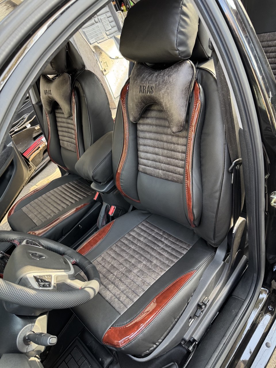 روکش صندلی چرم و مخمل و طرح چوب دنا پلاس – برند ارس